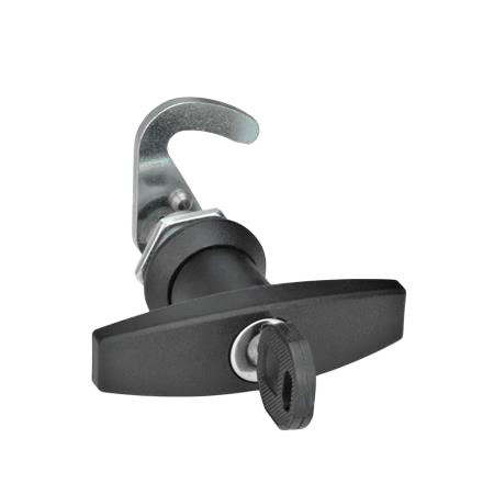 E+G lås, stål forzinket, T-greb /ens nøgler, sort, u/beslag